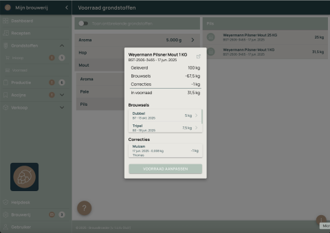 Maak van te voren een planning van de brouwsels die je wilt maken en voer de benodigde ingredienten in. Deze worden gereserveerd en zichtbaar bij het voorraadbeheer. Je kunt dan precies zien wat je nog mist om aan de slag te kunnen.