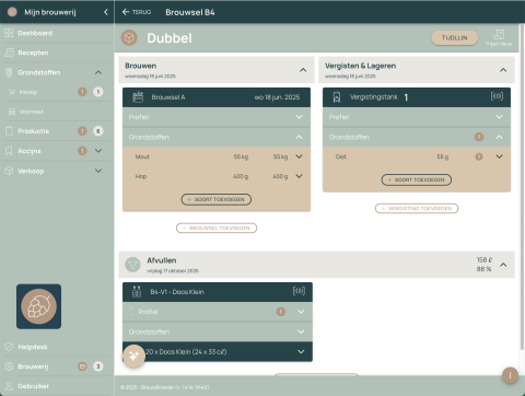 Maak van te voren een planning van de brouwsels die je wilt maken en voer de benodigde ingredienten in. Deze worden gereserveerd en zichtbaar bij het voorraadbeheer. Je kunt dan precies zien wat je nog mist om aan de slag te kunnen.