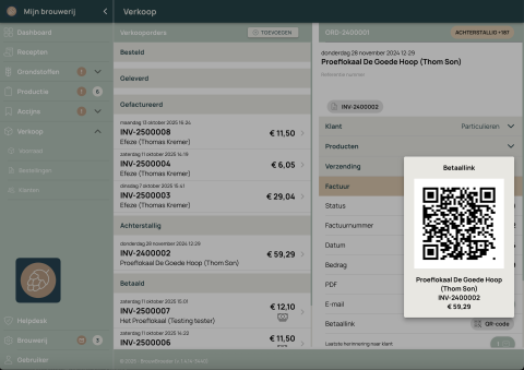 Als je bier eenmaal is afgevuld op fust, fles of blik, en de eventuele navergisting is afgerond, is het tijd om je lekkerste bier te verkopen aan retail of horeca. Scan eenvoudigweg de barcodes op de dozen en stuur in een handomdraai een factuur naar je klant. Een integratie met je eigen boekhoudpakket zorgt er voor dat er meteen een mutatie voor wordt aangemaakt.